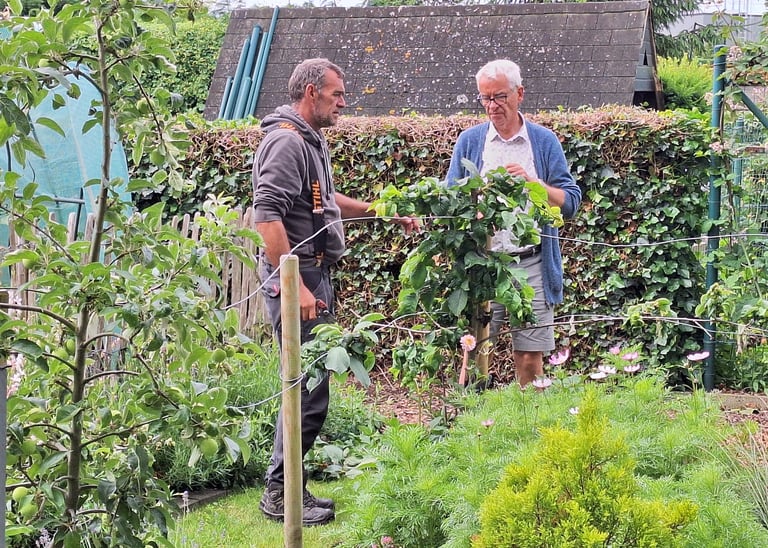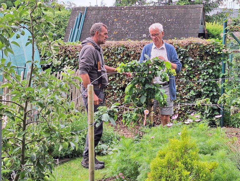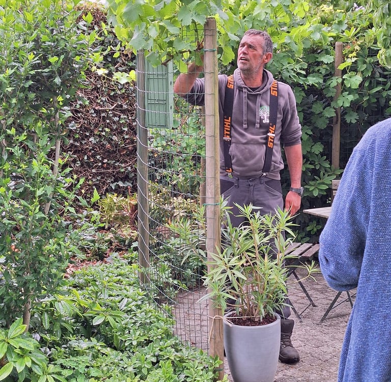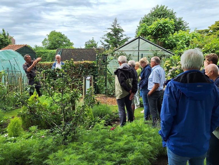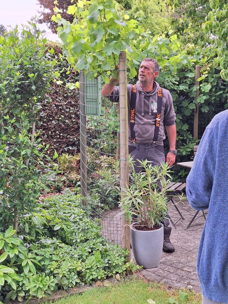 Op zondag 15 juni vond de tweede snoeiworkshop van het jaar plaats in Bree. Onder een zacht zomerzonnetje verzamelden tuinliefhebbers zich bij Leon Brebels voor een leerrijke sessie rond zomersnoei van fruitbomen en sierplanten.